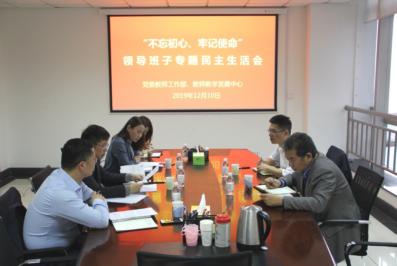 12月10日,按照学校《关于认真开好学校中层领导班子“不忘初心、牢记使命”专题民主生活会的通知》的工作部署和要求,党委教师工作部、教师教学发展中心召开领导班子专题民主生活会,学校主题教育第七指导组成员陈勇、徐永涛到会指导。