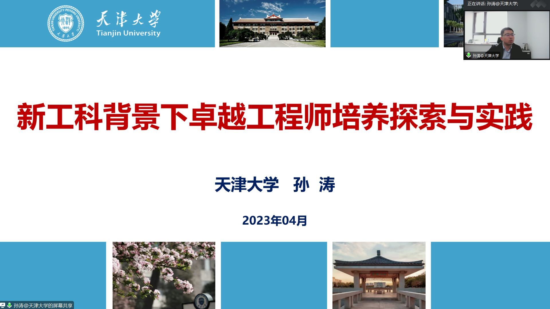 4月11日,天津大学孙涛教授应邀在线做题为“新工科背景下卓越工程师培养探索与实践”的专题报告,学校“‘新工科+新文科’教育改革与创新”专题研修班学员参加活动。