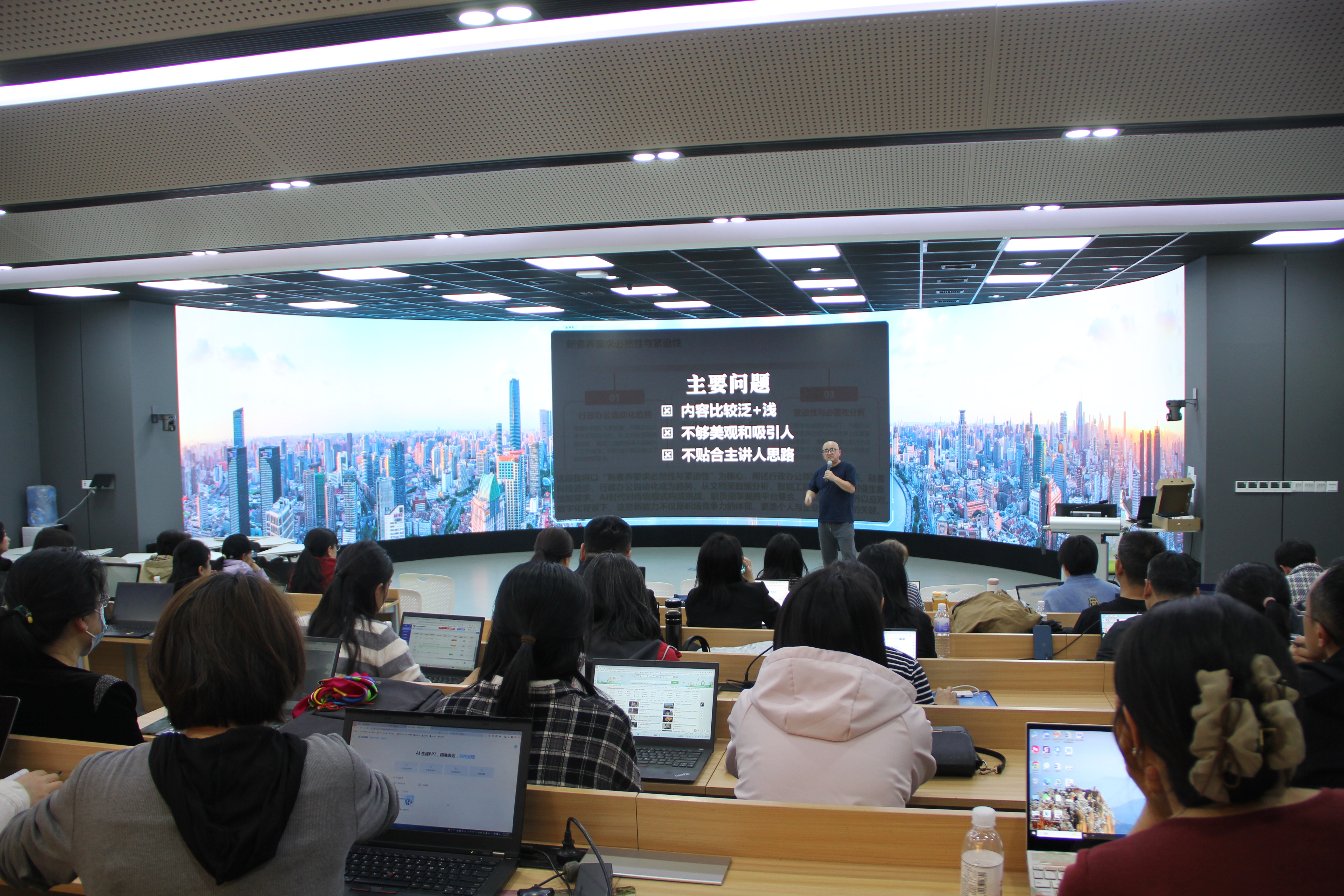 425日,北京大学陈江应邀来校进行题为“AI赋能下的课件品质进阶”的教学工作坊活动,学校“人工智能赋能教学创新”专题研修班学员及感兴趣的教师参加了活动。