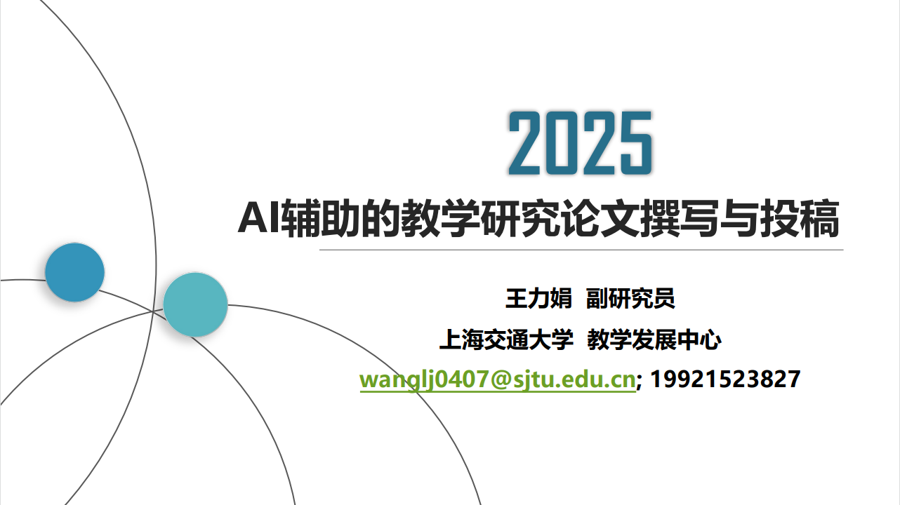10月23日,上海交通大学王力娟在线做题为“AI辅助的教学研究论文撰写与投稿”的专题报告,学校“数智时代智慧教学”专题研修班学员及感兴趣的教师参加了活动。