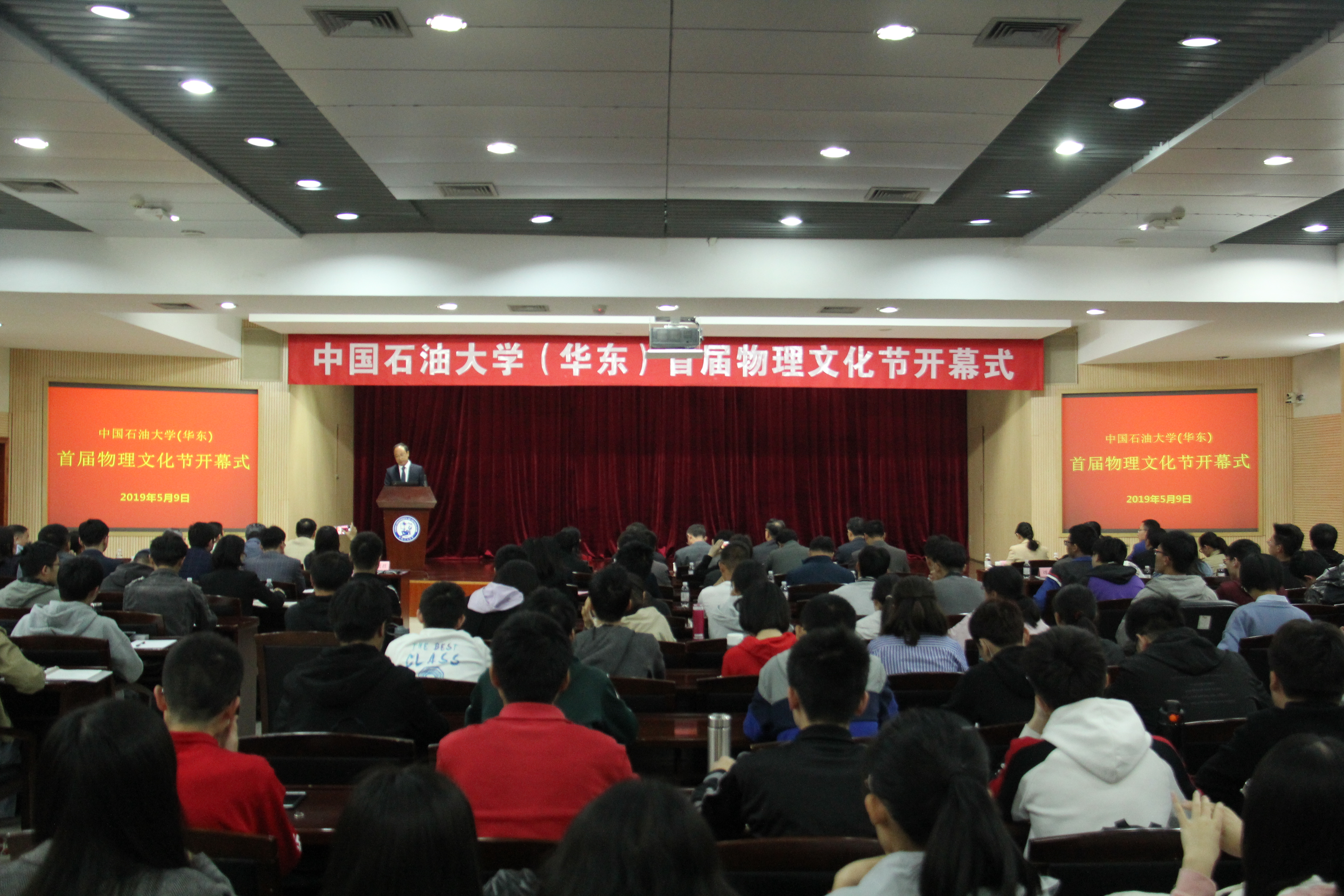 5月9日,以“格物明理﹒追求卓越”为主题的中国石油大学(华东)首届物理文化节开幕式于逸夫楼报告厅隆重举行。
